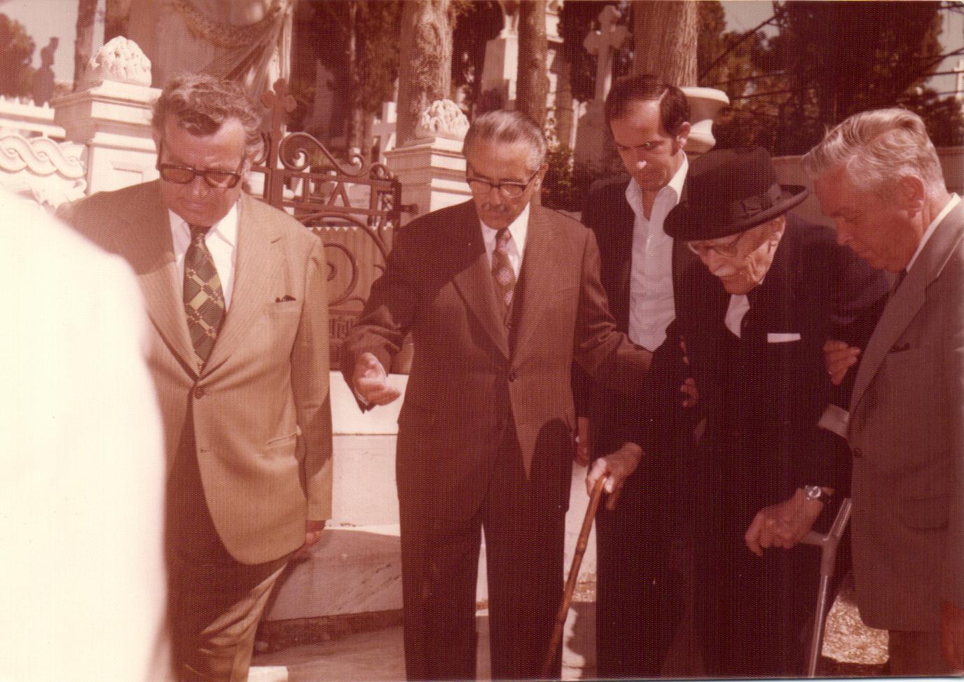 Στην φωτογραφία ο Βασίλης Ριμπόπουλος, νέος, περί τα τέλη της δεκαετίας 70 πίσω από τον Φίλιππο Δραγούμη, τότε ισόβιο ιδιωτικό μέλος του Ιδρύματος.